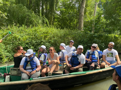 Répartis dans nos pirogues, nous avons navigué au milieu de la jungle Poitevine, à la recherche de nénuphars, d’oiseaux exotiques, et de lentilles d’eau ! Les bateliers qui nous conduisaient nous ont fait découvrir leur plus grand tour de magie : créer du feu dans l’eau ! Fun fact : Saviez-vous que ce lieu hors du temps est aussi surnommé la Venise Verte ?